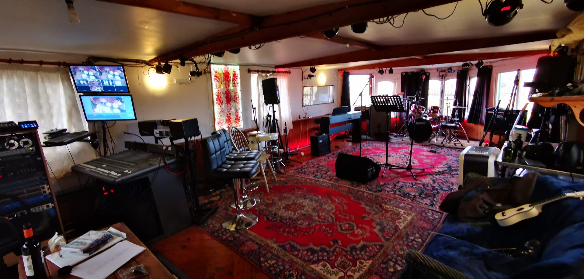 Welcome to Studio 1 at Yougig, a spacious, character-filled recording environment set aboard two unique houseboats in the coastal town of Shoreham-by-Sea. Designed to inspire creativity while delivering professional production capability, Studio 1 combines the atmosphere of a distinctive waterfront location with the flexibility of a modern, fully equipped live room.